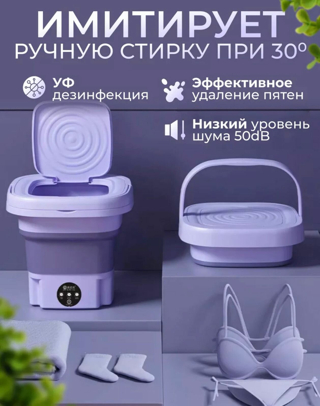 Портативная мини стиральная машина зеленая, для мелкой одежды до 1.5 к, фиолетовая интересное: