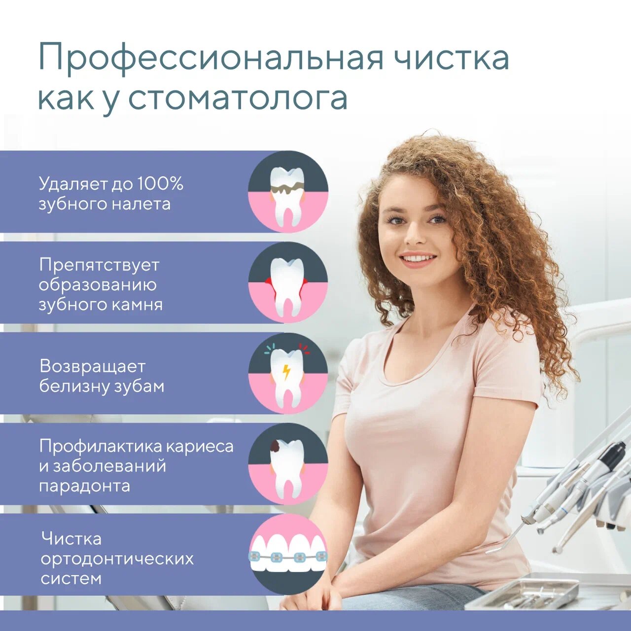 | Дополнительная информация | Глубокая чистка, Деликатная чистка, Массаж десен, Обычная чистка, Отбеливание, Полировка, Чистка и отбеливание, Очистка межзубных промежутков |