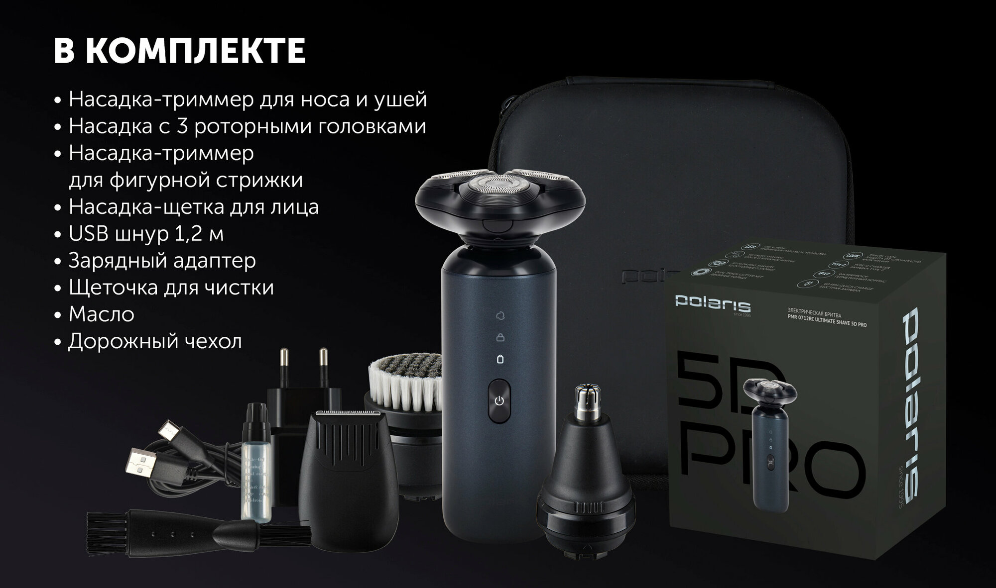 Бритва электрическая Polaris PMR 0712RC Ultimate shave 5D PRO Черный океан