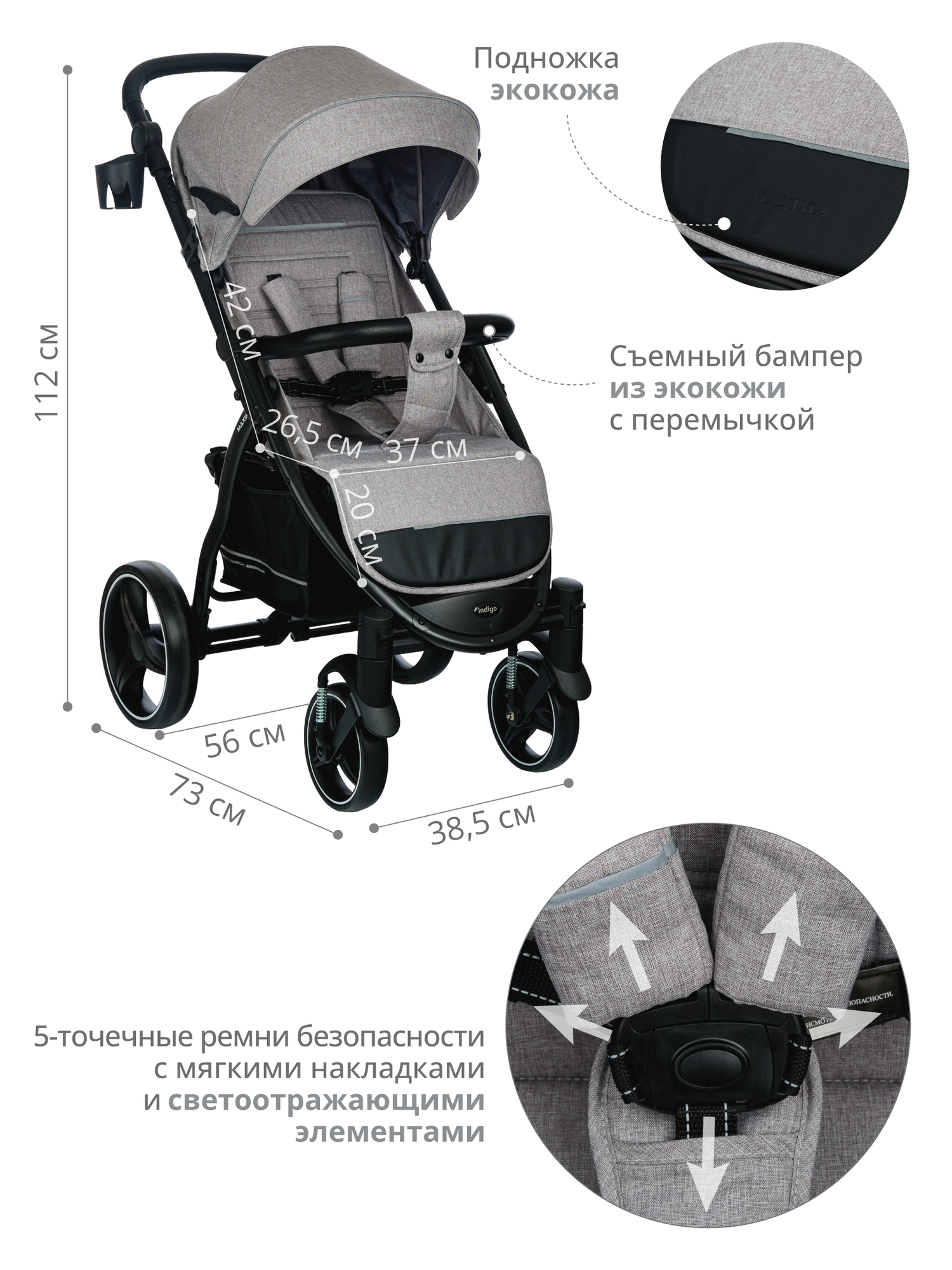 Коляска прогулочная детская MAXIMA (INDIGO), съемный бампер, цвет светло-серый