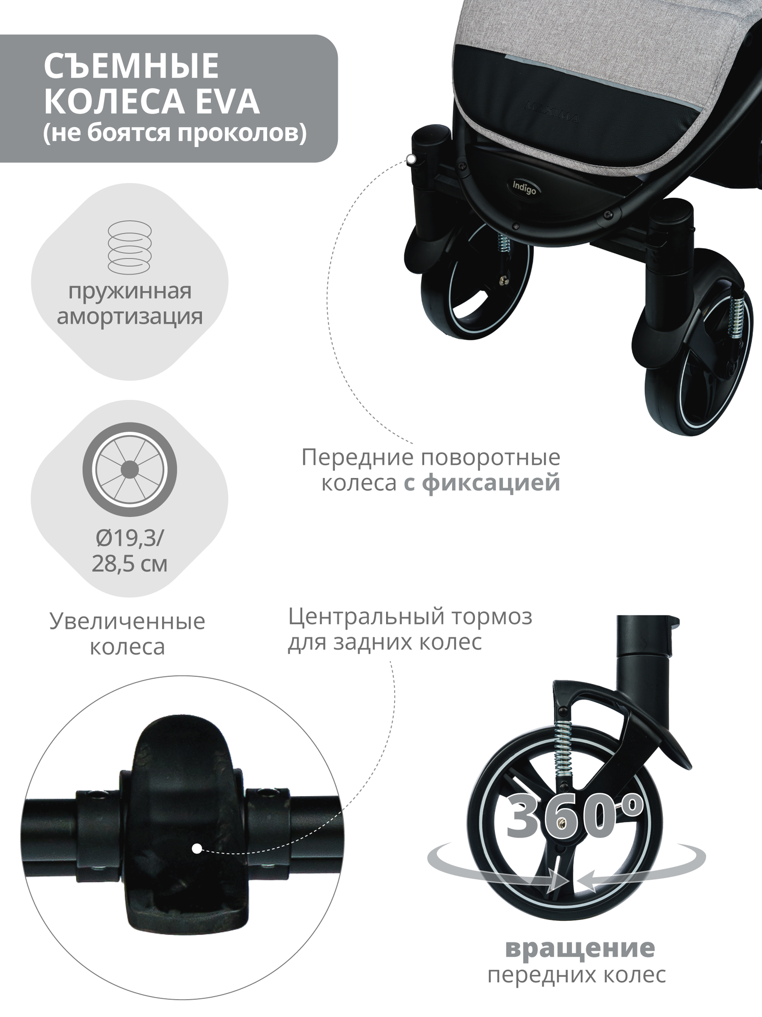INDIGO Коляска прогул. MAXIMA (2кол.(20см)2кол.(30см), съемн.бамп.) (INDIGO), светло-серый