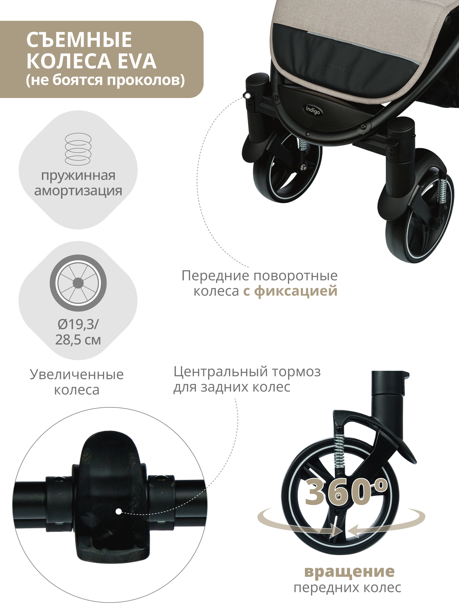 Indigo Коляска прогул. MAXIMA (2кол.(20см)2кол.(30см), съемн.бамп.) (INDIGO), бежевый