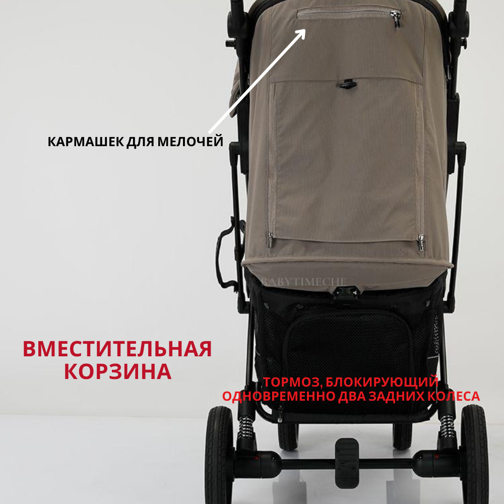 Коляска прогулочная Baballo 2024 всесезонная для путешествий, цвет коричневый на черной раме