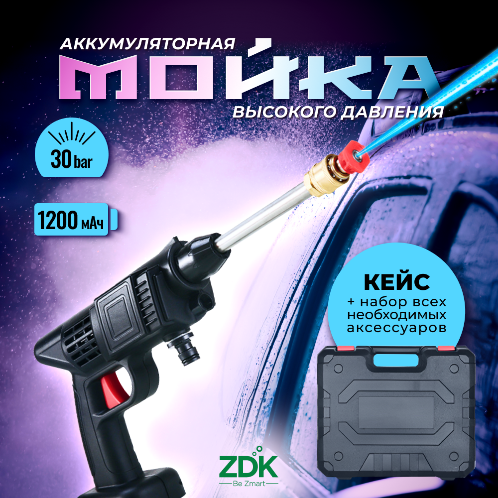 Портативная мини-мойка высокого давления ZDK для автомобиля, дома и сада с аккумулятором