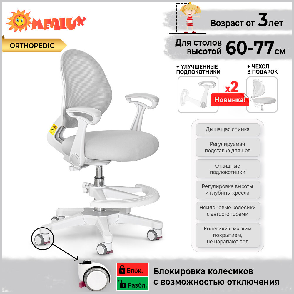 Растущее детское кресло для дома Mio Air G (арт. Y-400 G (arm)) для обычных и растущих парт + подлокотники + подставка для ног + чехол на сиденье