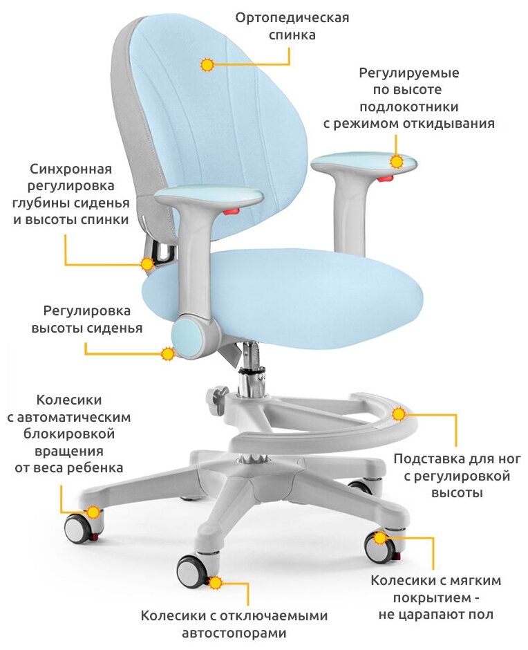 Растущее детское кресло для дома Mio (Y-407) KBL + подлокотники в комплекте + подставка для ног