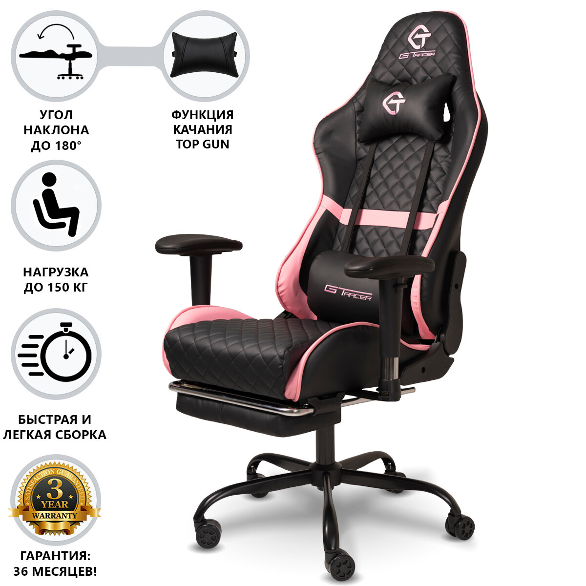 Купить Кресло компьютерное игровое, экокожа, цвет черно-розовый