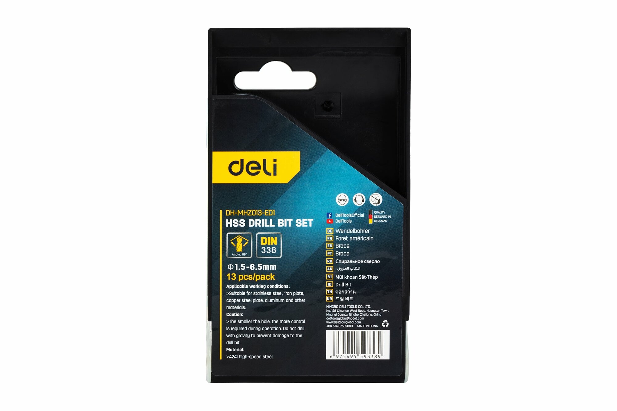 Купить Набор сверл по металлу HSS (1,5-6,5мм, 13 шт) Deli DH-MHZ013-ED1 пластиковый кейс