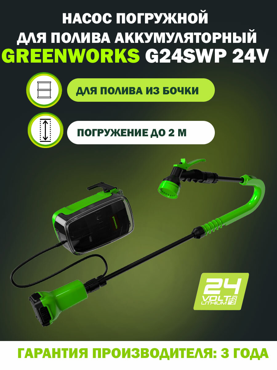 Насос аккумуляторный для полива из бочки Greenworks G24SWP, поток воды до 1800 л/ч, без АКБ и ЗУ 3401007 интересное: