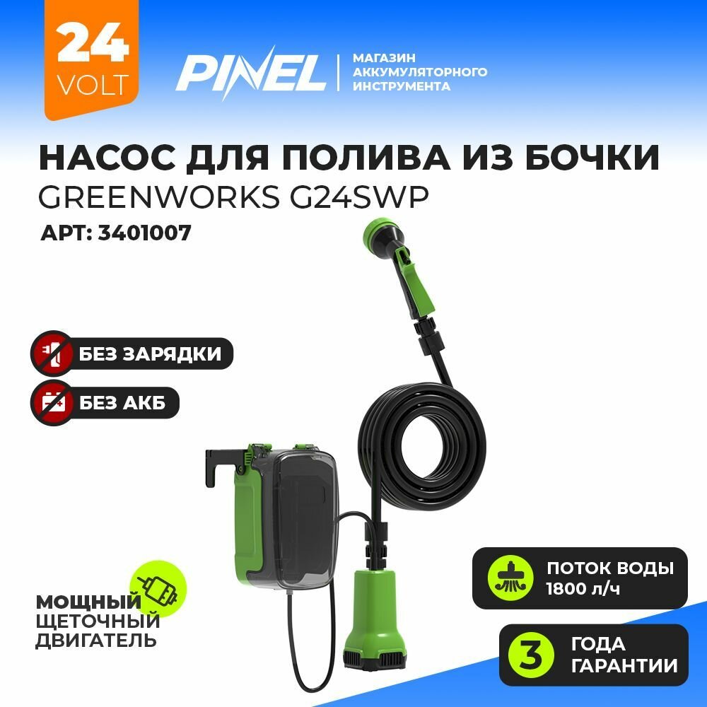Купить Насос аккумуляторный для полива из бочки Greenworks G24SWP, поток воды до 1800 л/ч, без АКБ и ЗУ 3401007