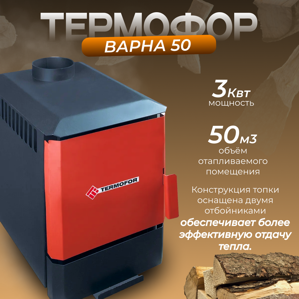 Дровяная отопительная печь Варна 50 Термофор (до 50м3)