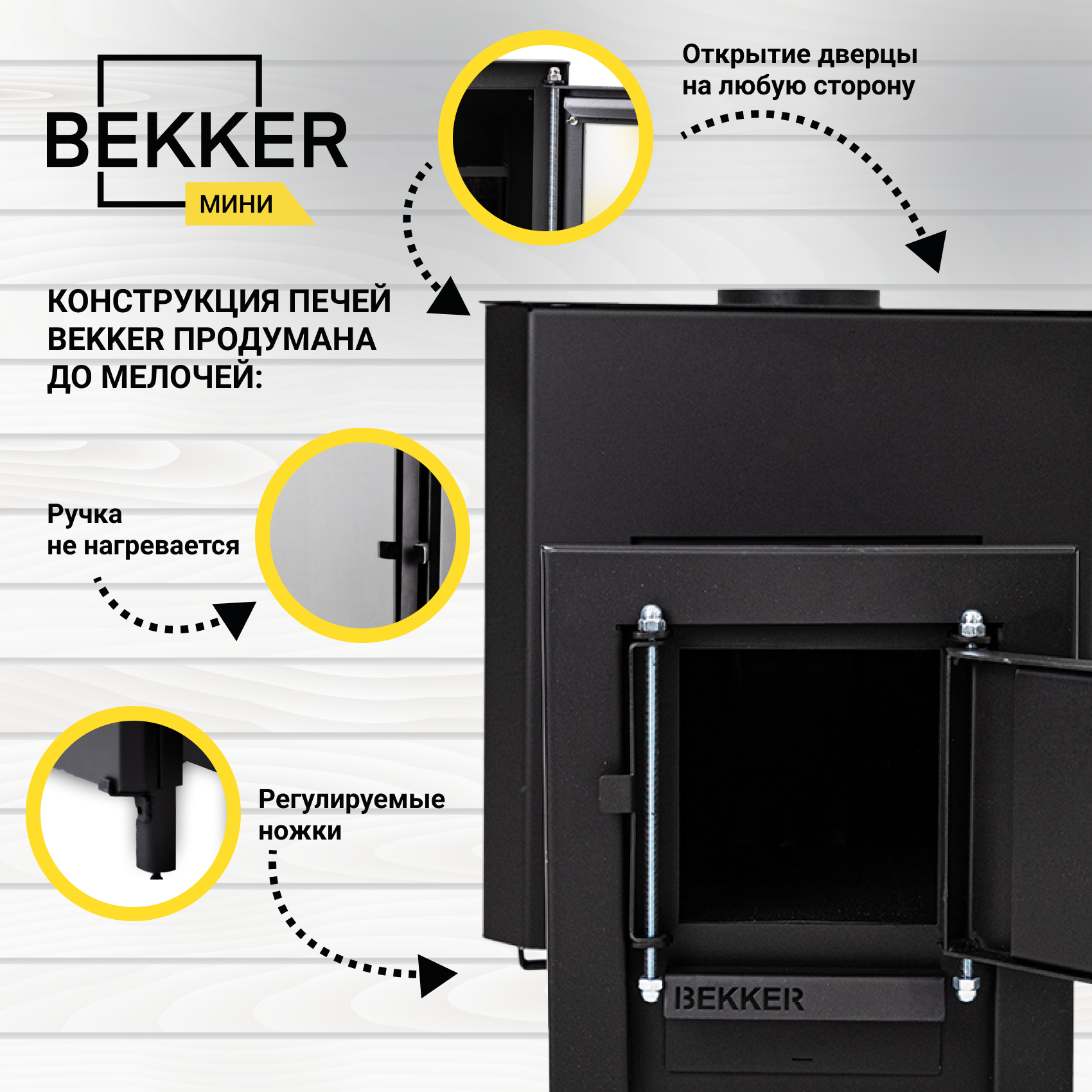 Печь банная BEKKER - Мини (3 мм), короткое горло, конвекция, глухая дверца, печь дровяная для бани