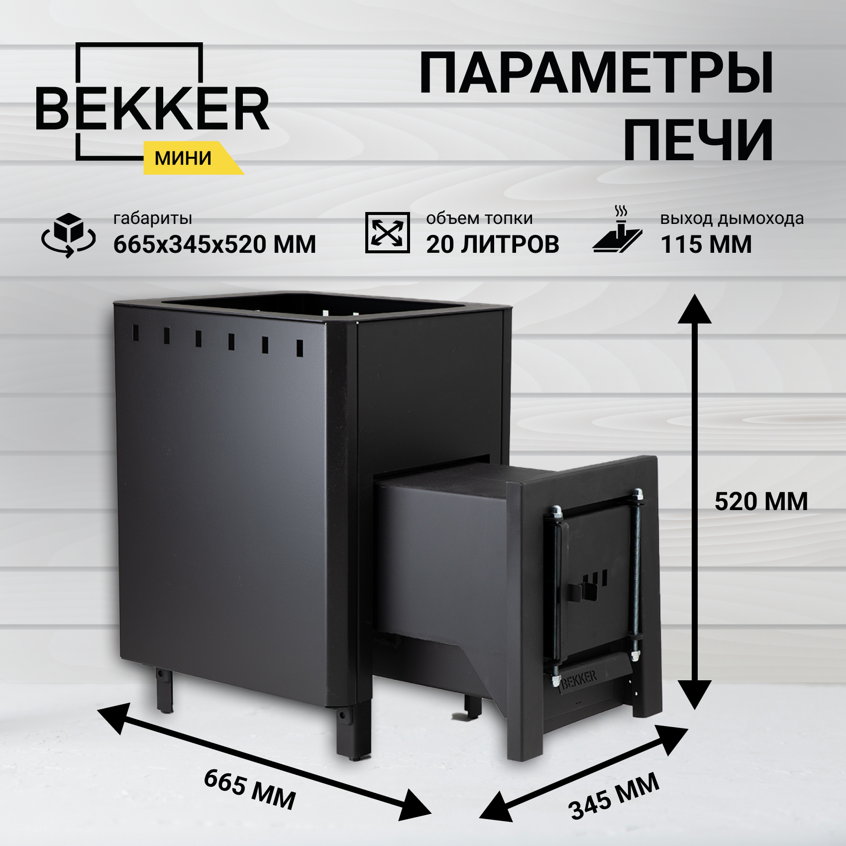 Печь банная BEKKER - Мини (3 мм), короткое горло, конвекция, глухая дверца, печь дровяная для бани