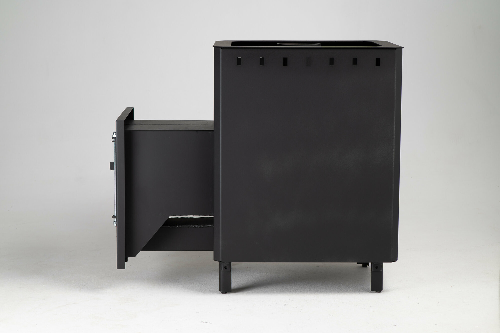 Печь дровяная банная BEKKER - Мини (3 мм), длинное горло, кожух под камни, глухая дверца