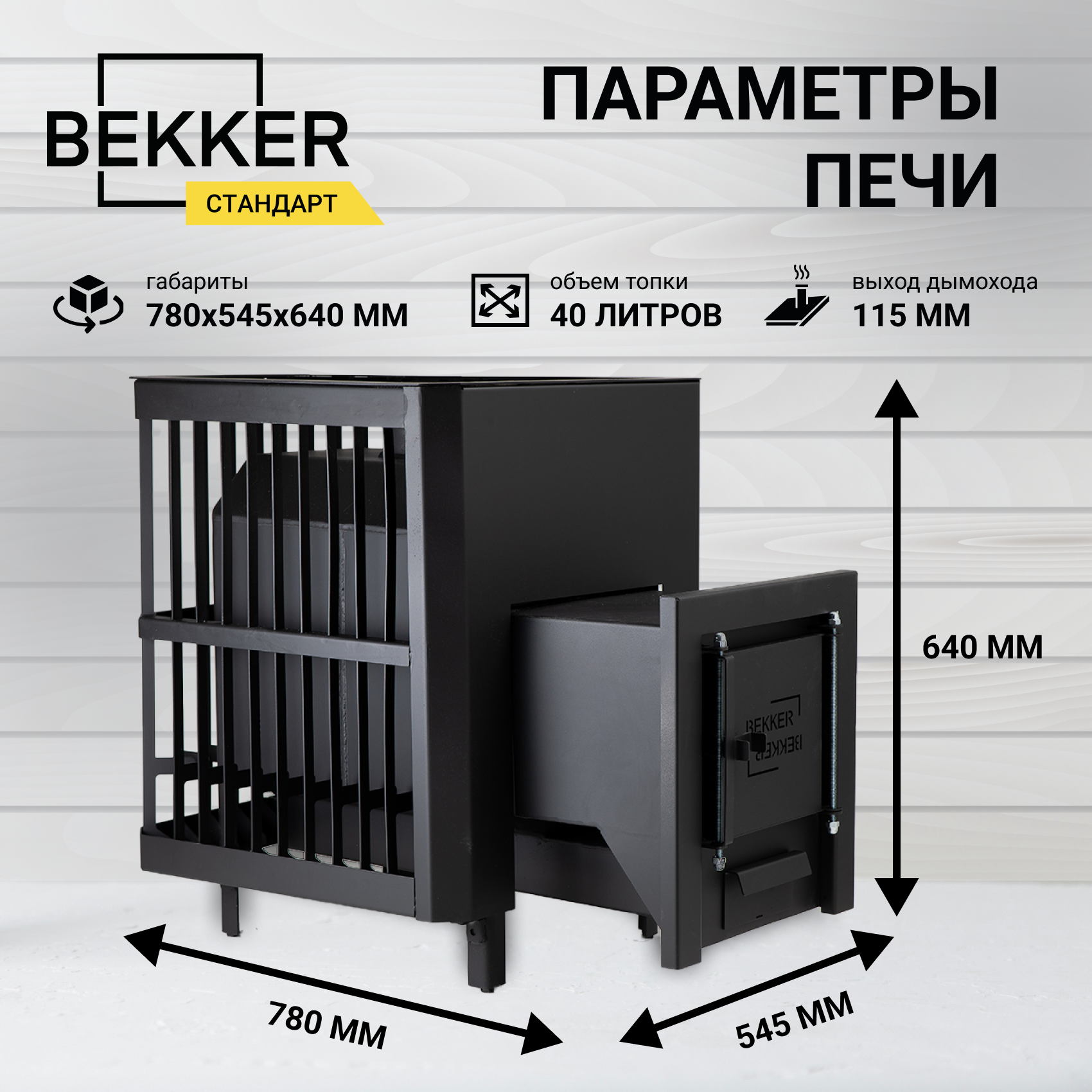 СохранитьПечь для бани BEKKER - Стандарт (6 мм), длинное горло, кожух под камни, глухая дверца, печь дровяная, печь банная интересное: