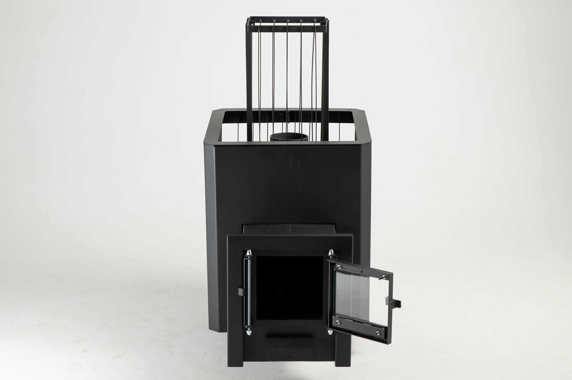 Печь для бани дровяная BEKKER - Стандарт (6 мм), длинное горло, кожух под камни, глухая дверца, печь для сауны