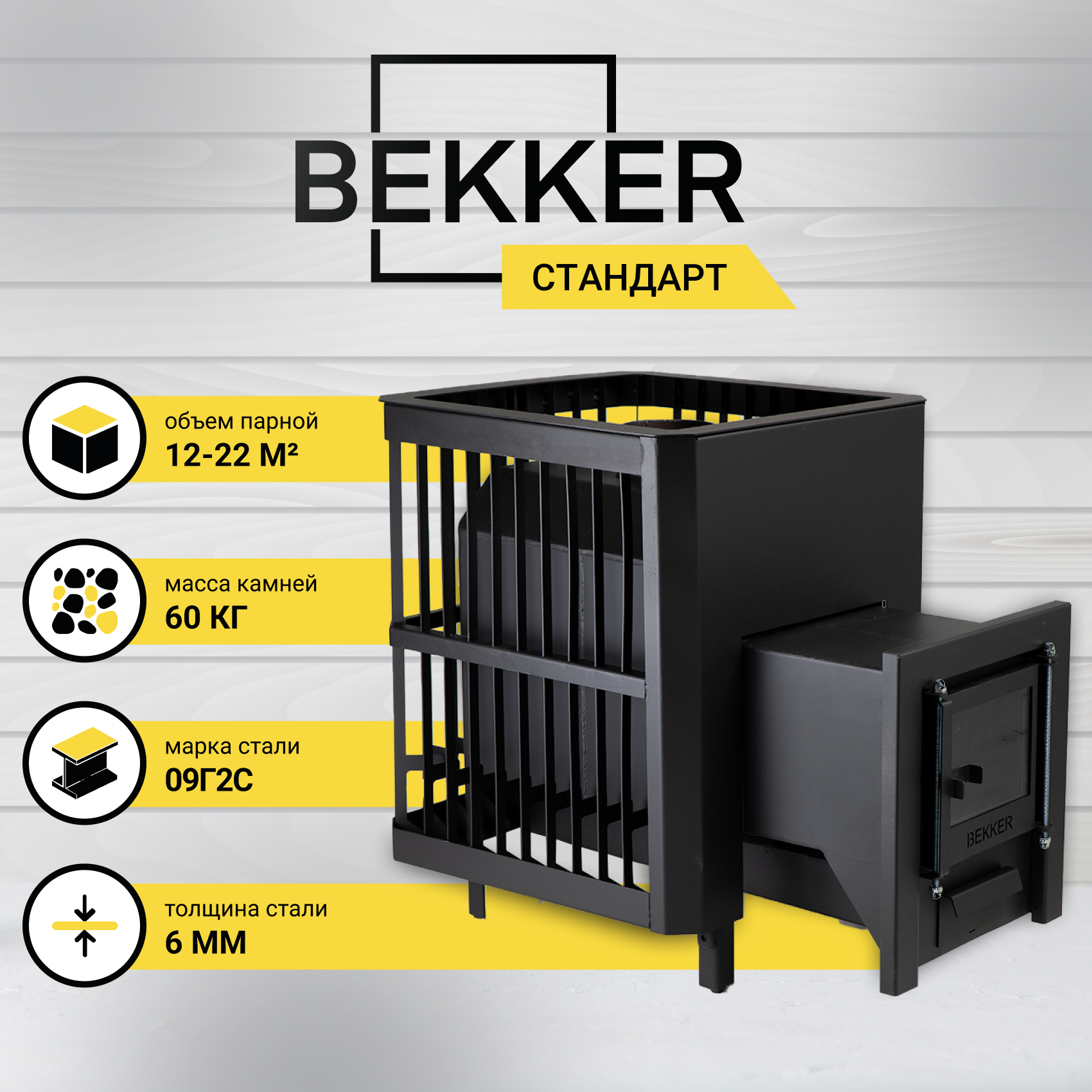 Печь для бани BEKKER - Стандарт (6 мм), короткое горло, конвекция, глухая дверца, печь дровяная, печь банная