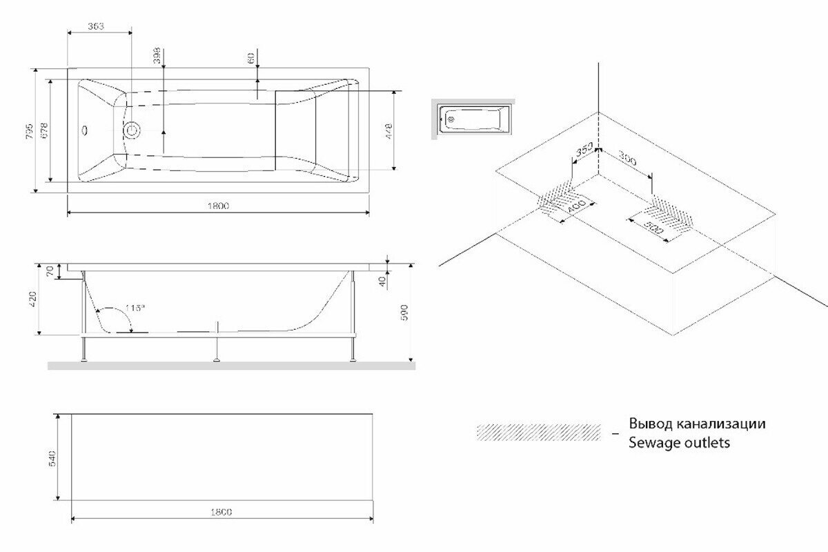 | Тип ванны | пристенная |
