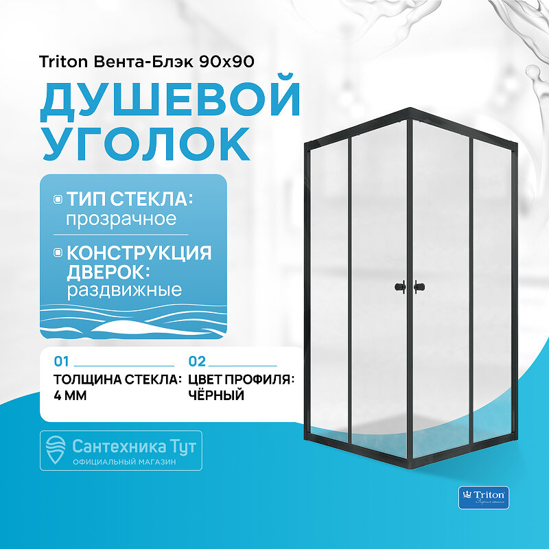 Душевой уголок Triton Вента-Блэк 90х90 прозрачный, черный (Щ0000054466) интересное: