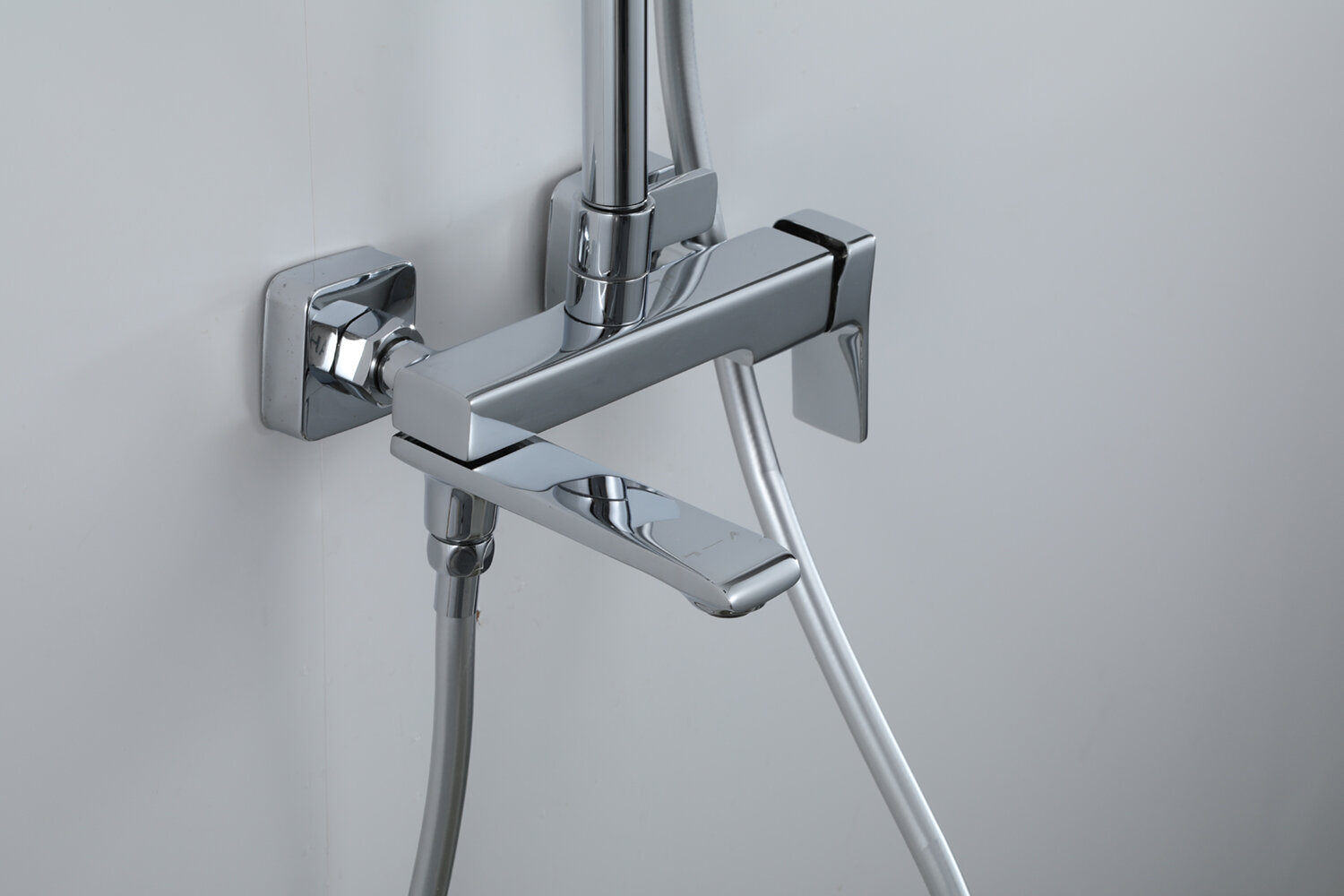 | Комплектация | верхний душ / держатель лейки / душевая стойка / душевая штанга / излив для набора воды / лейка / набор эксцентриков / отражатель / переключатель потоков / Смеситель / шланг |