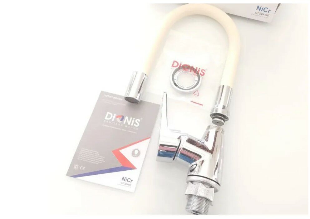Смеситель для кухни с гибким изливом/ кран на кухню Dionis Dub4-e-402, без гибкой подводки, цвет: хром