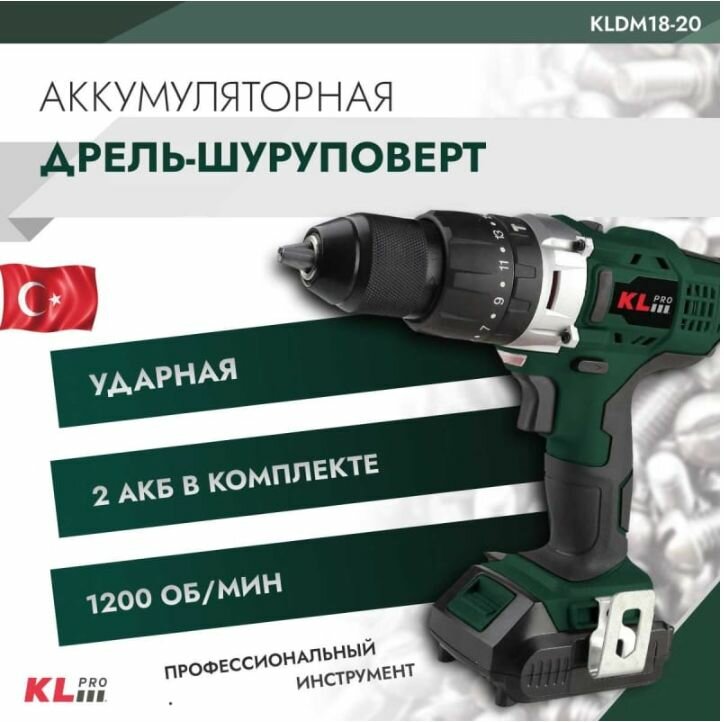 Купить Ударная аккумуляторная дрель-шуруповерт KLPRO KLDM18-20 18V 2Ah Case 40Н*м