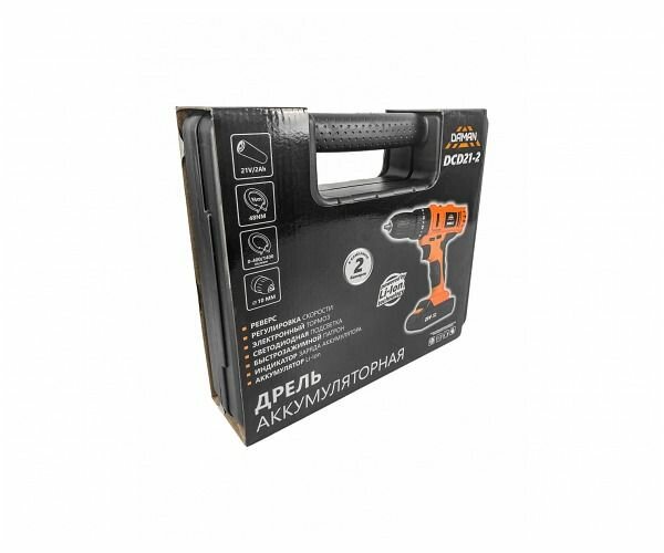 Дрель аккумуляторная DCD21-2 DAMAN (21В, Li-on, 2 АКБ, зарядка, кейс,2Ач, 2скорости, индикатор заряда, быстросъемный патрон)