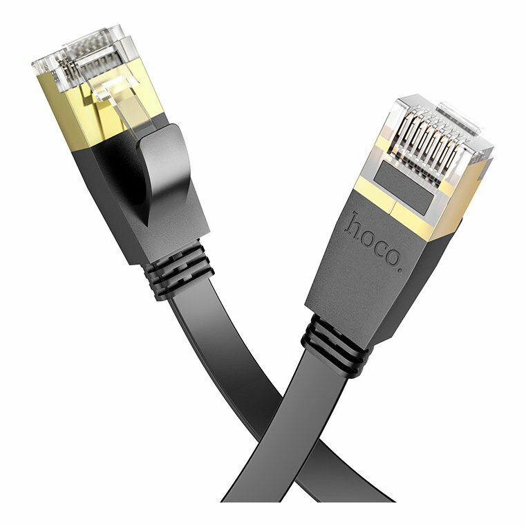 Гигабитный сетевой кабель для интернета Hoco US07, RJ45 Ethernet 1Gbps, Плоский, 10 метров, Черный