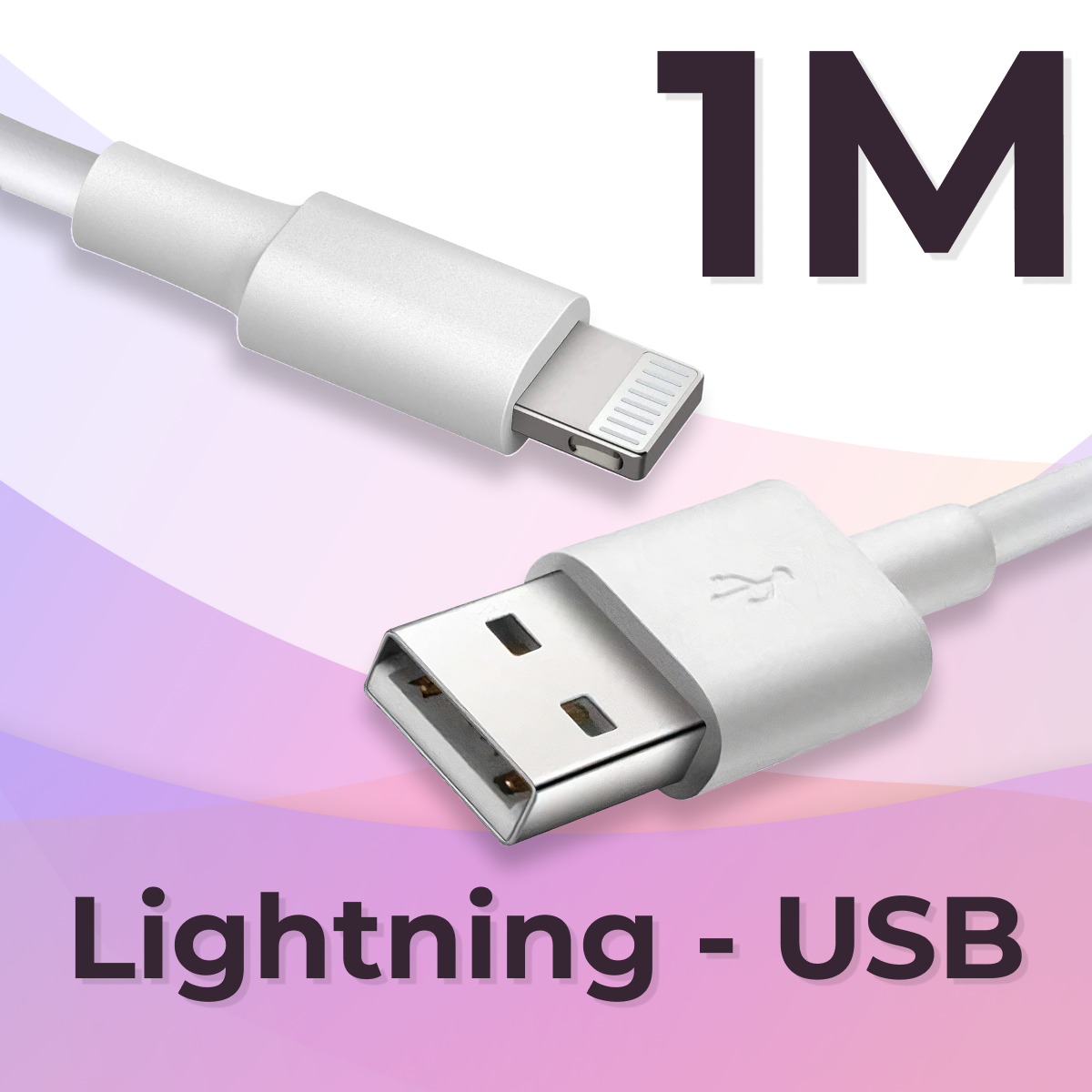 Кабель 1 метр USB Lightning для зарядки Apple iPhone, iPad, AirPods, MacBook / Белый