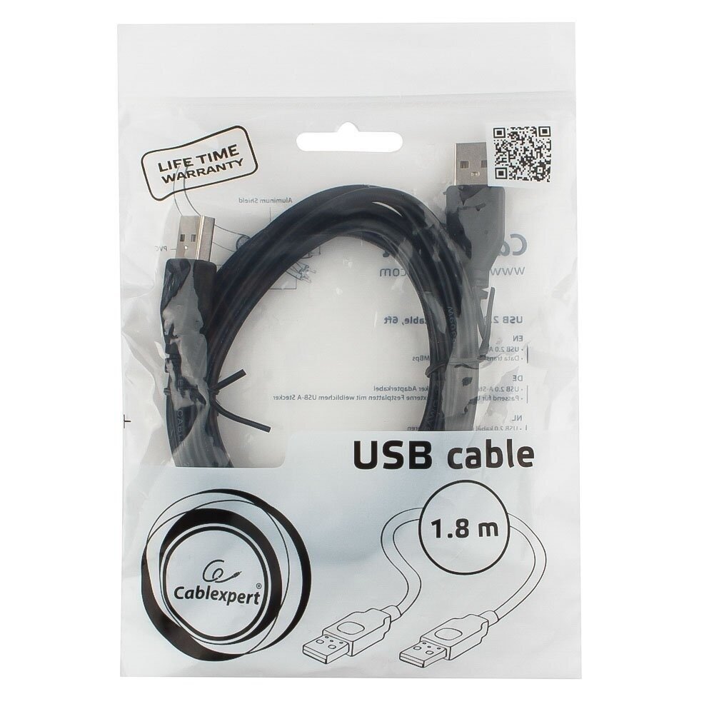 Кабель USB тип A-A 1.8м (для устройств с разъёмом типа A) Cablexpert, экран, черный