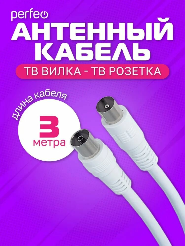 Антенный Кабель PERFEO T5001 ТВ-ТВ, 1м, белый