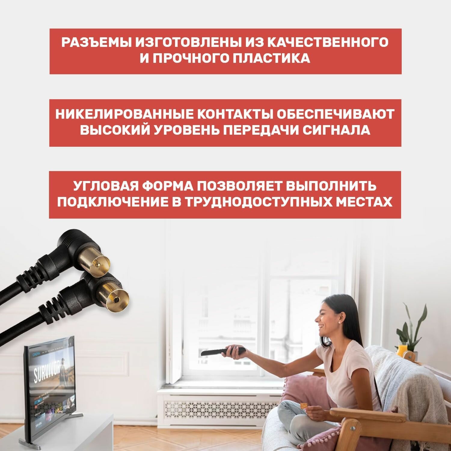 Шнур ТВ гнездо - ТВ штекер, угловой, 1,5м, черный REXANT 10 шт арт. 18-0012 интересное: