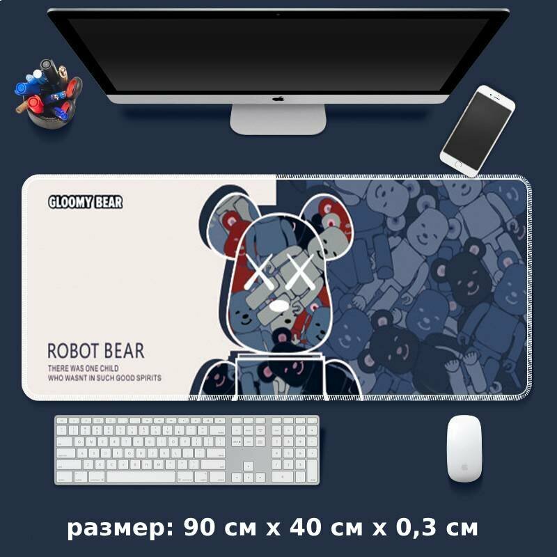 Купить Коврик для мышки, компьютерный большой игровой, 90х40х0,3 см (Robot Bear синий)