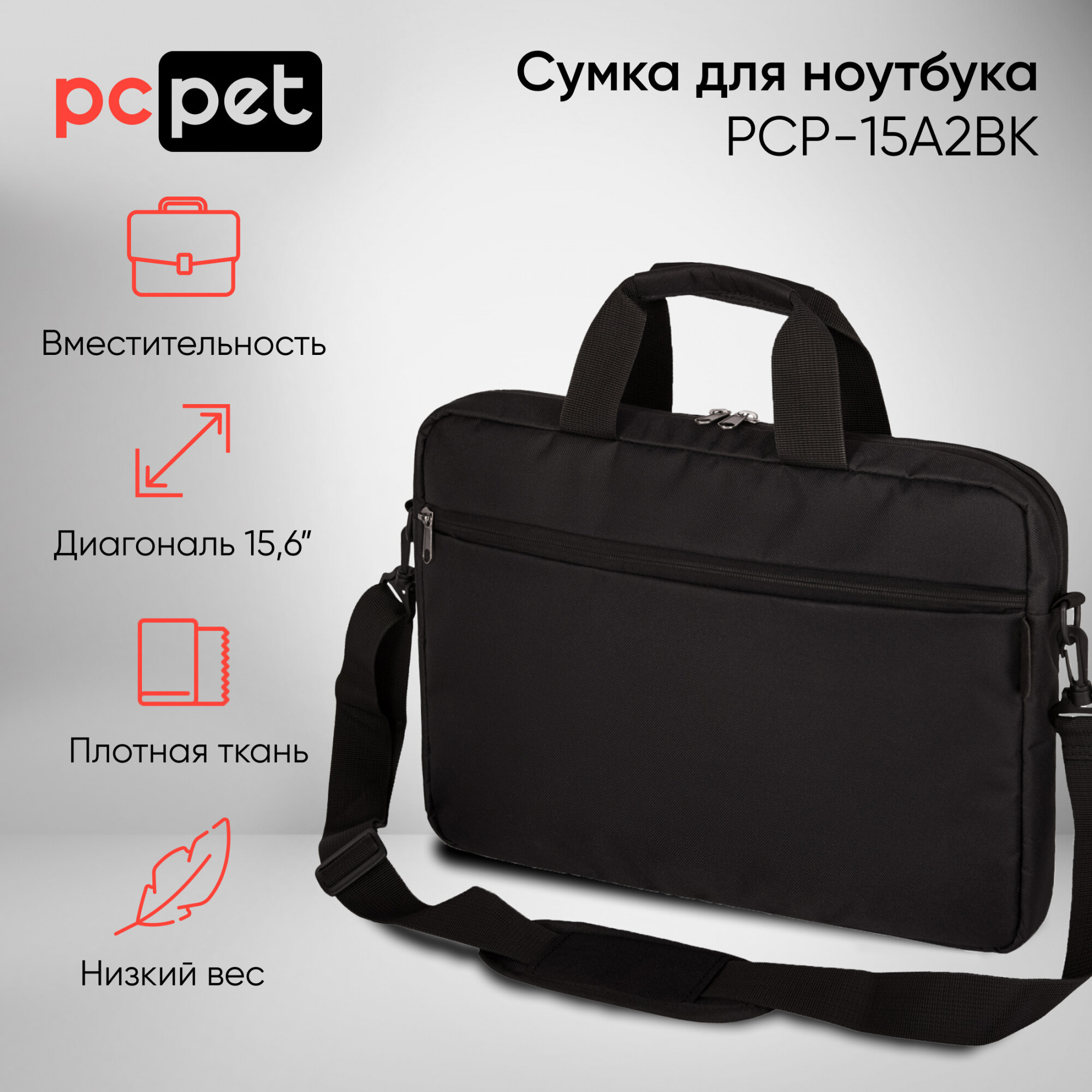 Купить Сумка для ноутбука 15.6" PC Pet PCP15A2BK, черный/черный