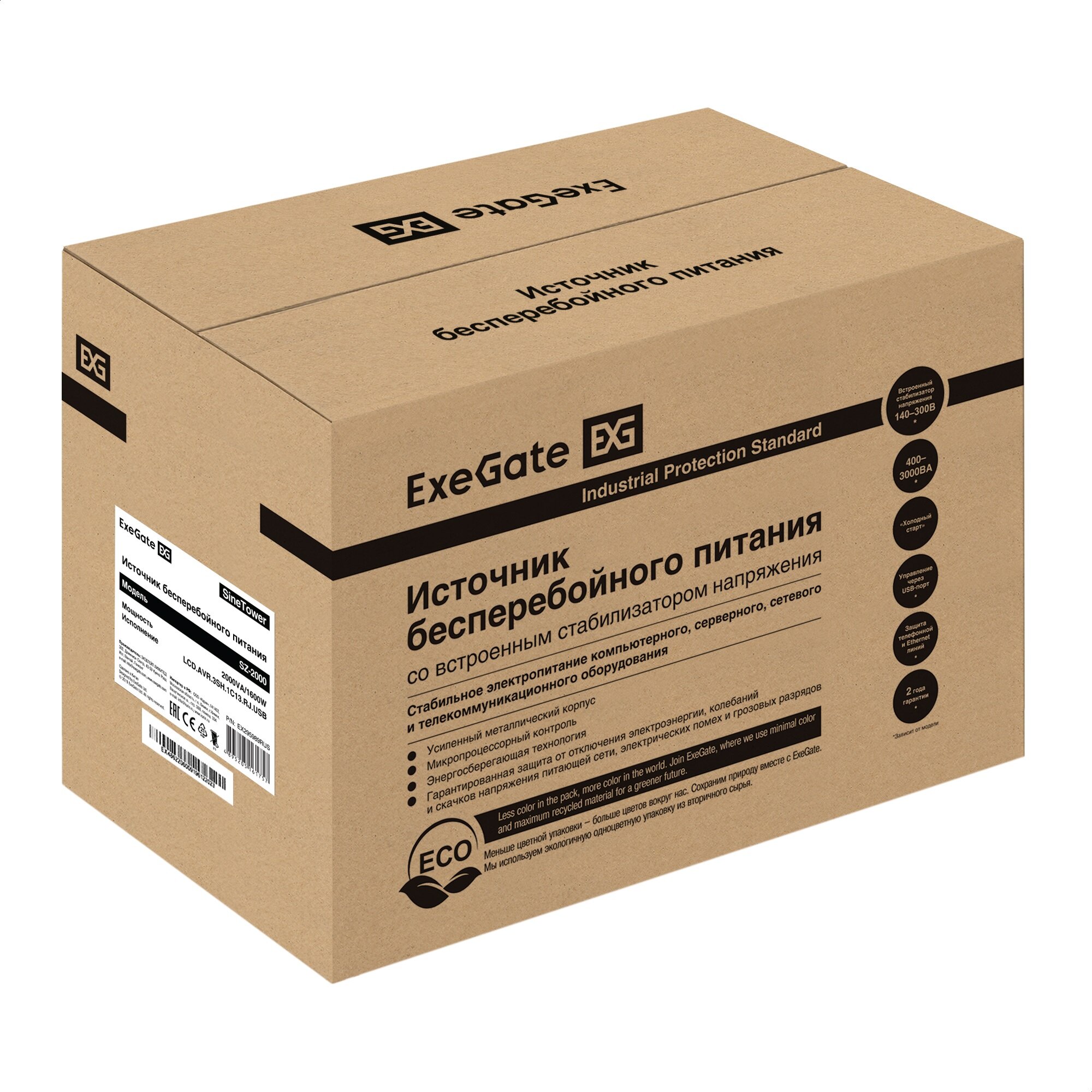 ИБП ExeGate SineTower SZ-2000. LCD. AVR.3SH.1C13. USB (EX295989RUS)