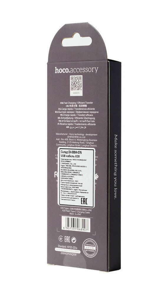Кабель Hoco X20 Flash USB - USB Type-C, 2 м, 1 шт., черный