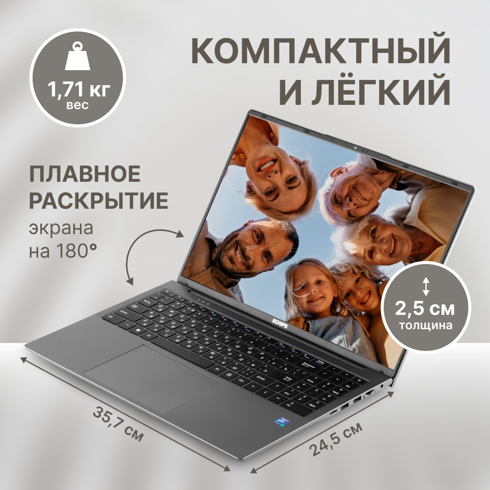 Ноутбук Echips Teen 16" 1920x1200 IPS, Intel Processor N100, 8GB RAM, SSD 512GB, Windows 11 Home интересное: