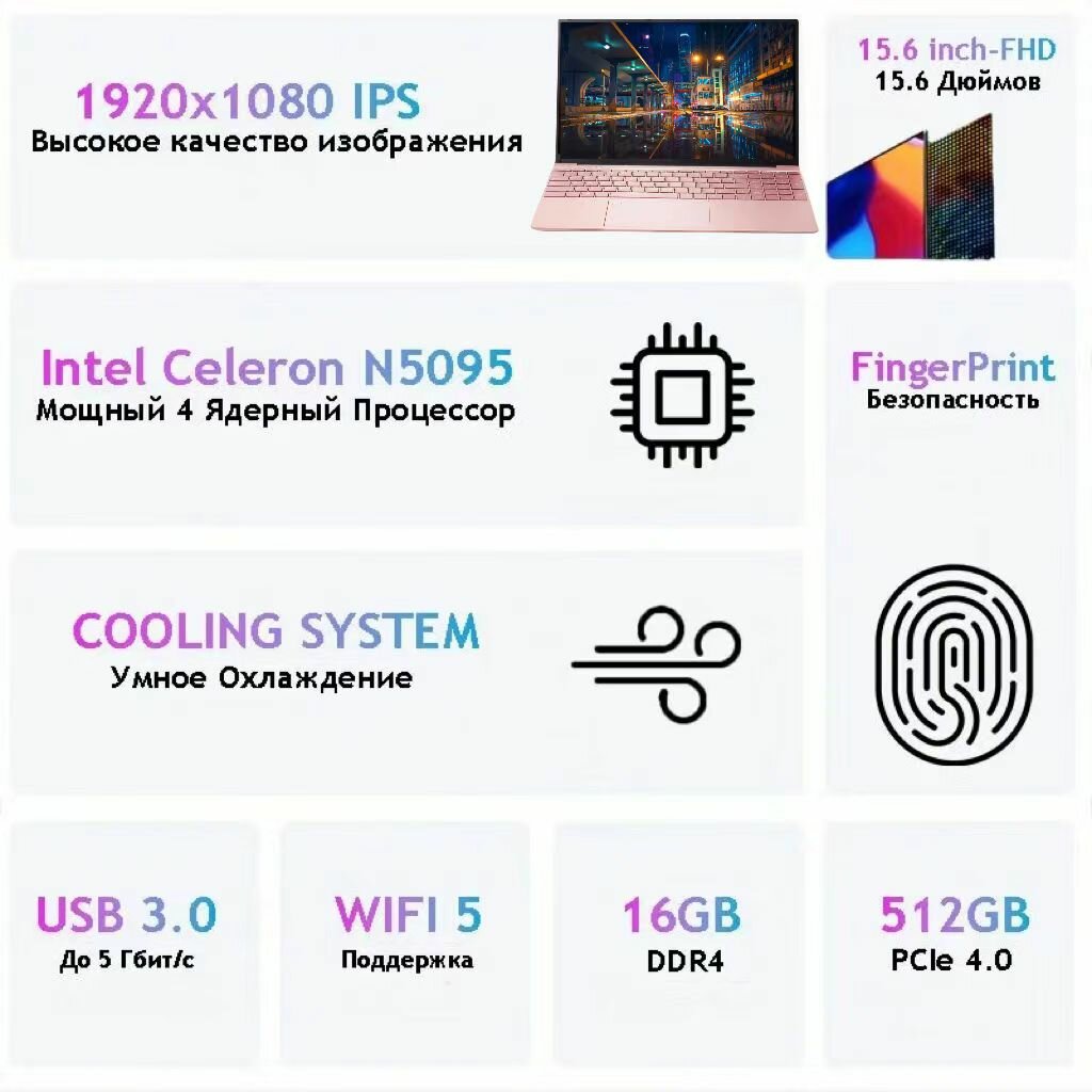 СохранитьНоутбук 15.6", Intel Celeron N5095 (2.0 ГГц), RAM 16 ГБ, SSD 512 ГБ, Intel UHD Graphics, Windows Pro, Розовый, Русская раскладка интересное: