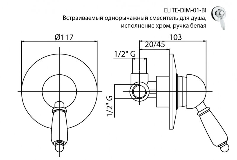 Смеситель для душа Cezares ELITE DIM (ELITE-DIM-03/24-Bi)