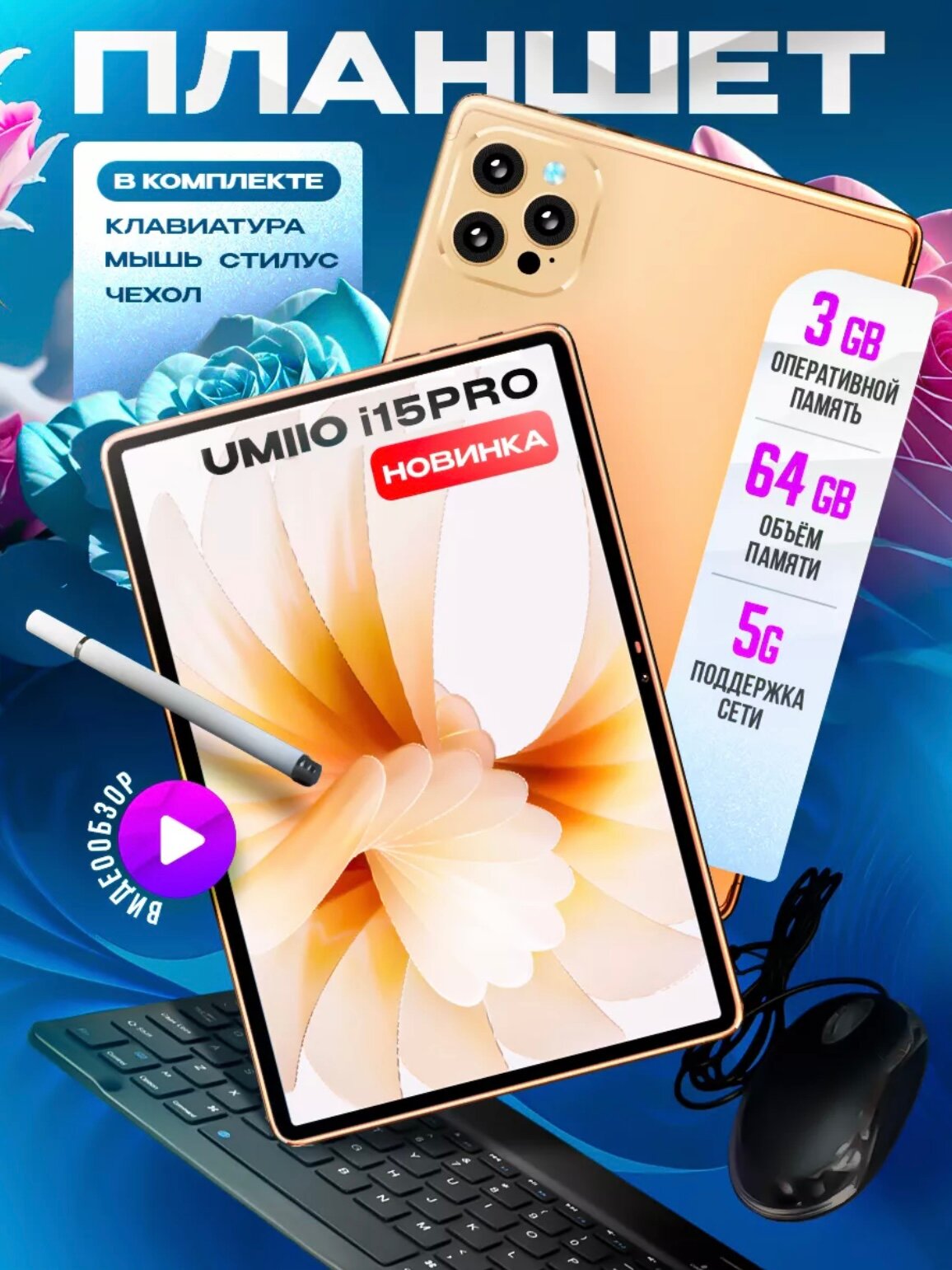 Планшет Umiio i15 Pro 10.1" 6GB 128 GB 2sim с клавиатурой, Золото интересное: