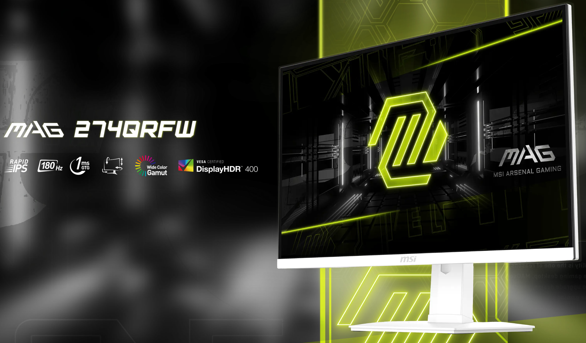 Купить Монитор MSI MAG 274QRFW 27" 16:9 WQHD(2560x1440) Rapid IPS,1ms, 1000:1, 100M:1, 400nit, 178/178, 2xHDMI 2.0b, DP 1.4a, Tilt, Swivel, Height,Pivot,VESA,180Hz,White,1y w-ty (9S6-3CC29H-277)