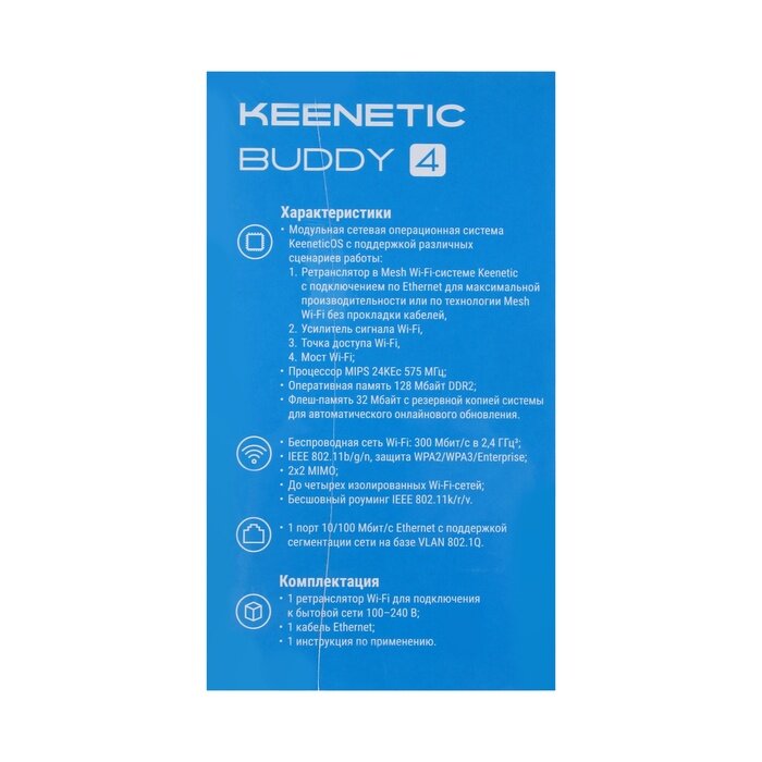 Повторитель беспроводного сигнала Keenetic Buddy 4 (KN-3211) N300 10/100BASE-TX белый интересное: