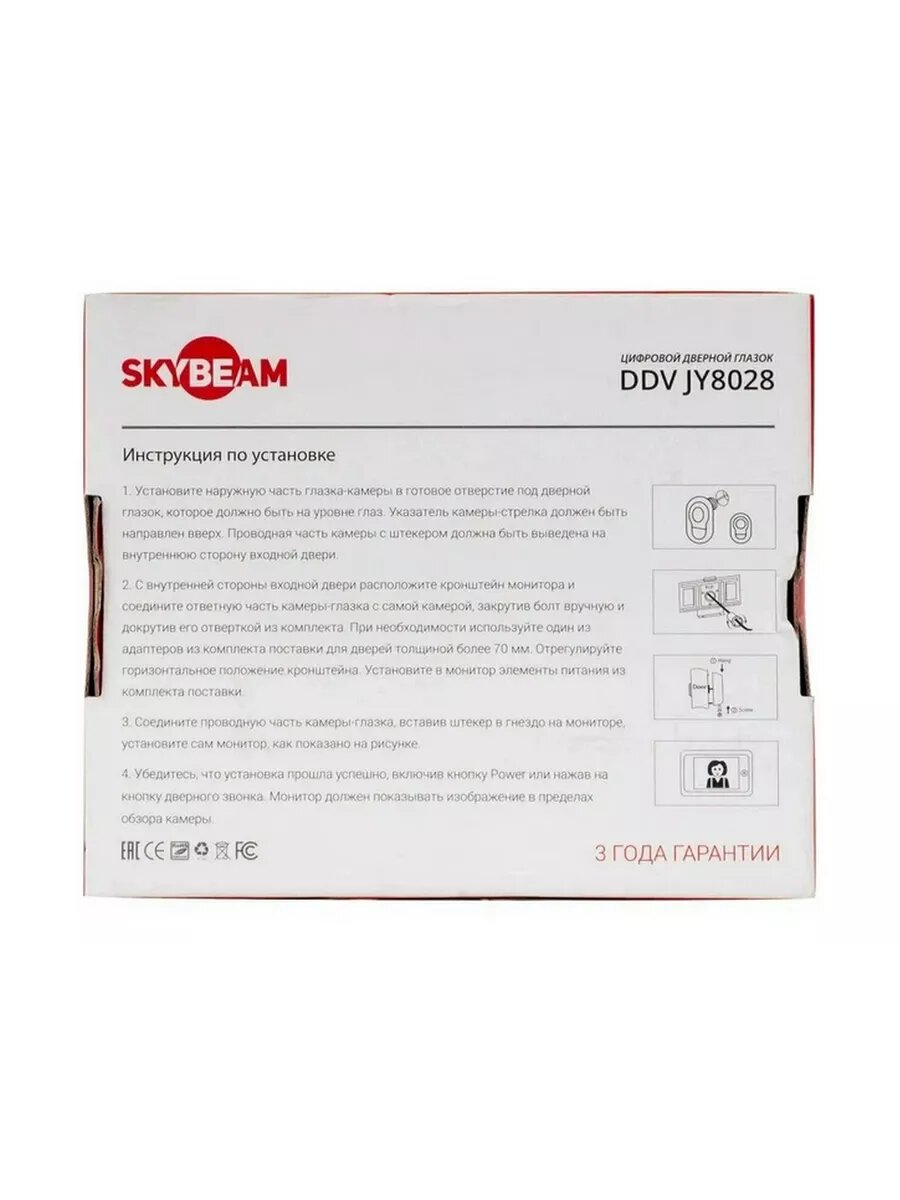 | Дополнительная информация | Видеоглазок со звонком Skybeam DDVJY8028 2.8" |