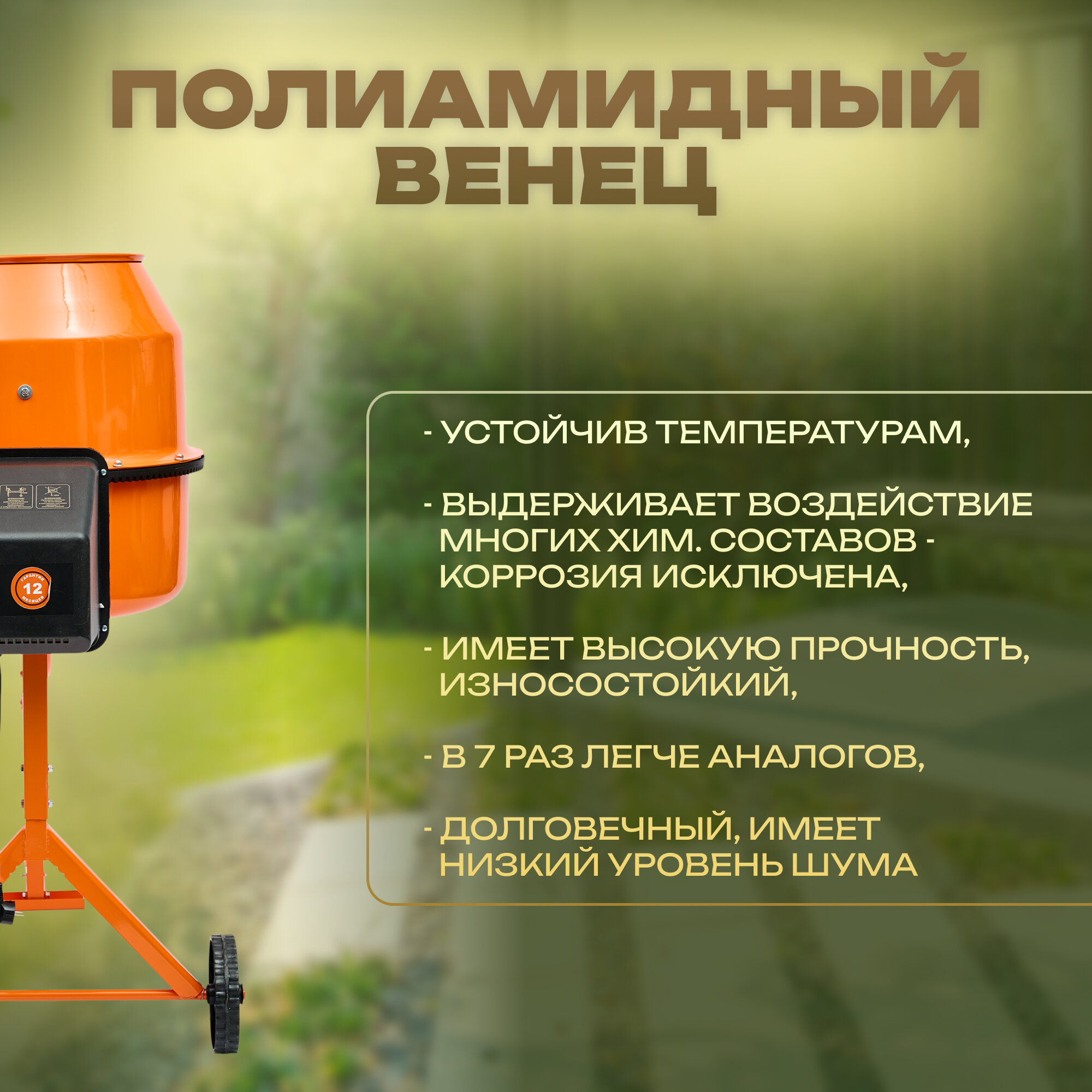 Бетоносмеситель ПРОФМАШ Б-200, полиамидный венец