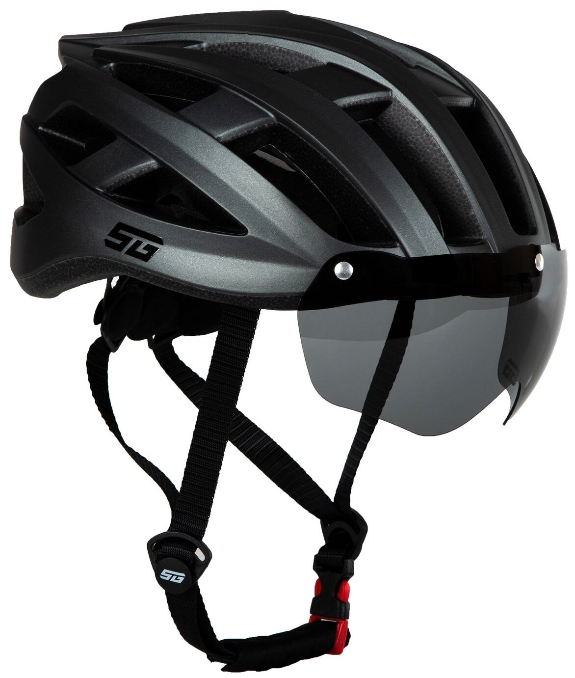 Велошлем STG TS-33 с визором и фонарем, L (58-61 см), серый, в коробке