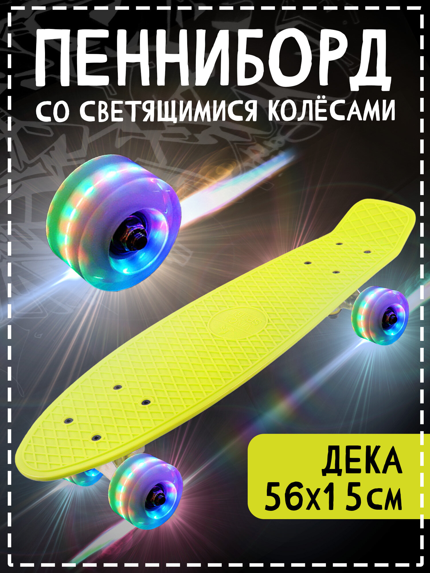 Купить DS 02 lime Led. Доска-круизер, дека 56*14,5 см., лайм, колеса PU с подсветкой