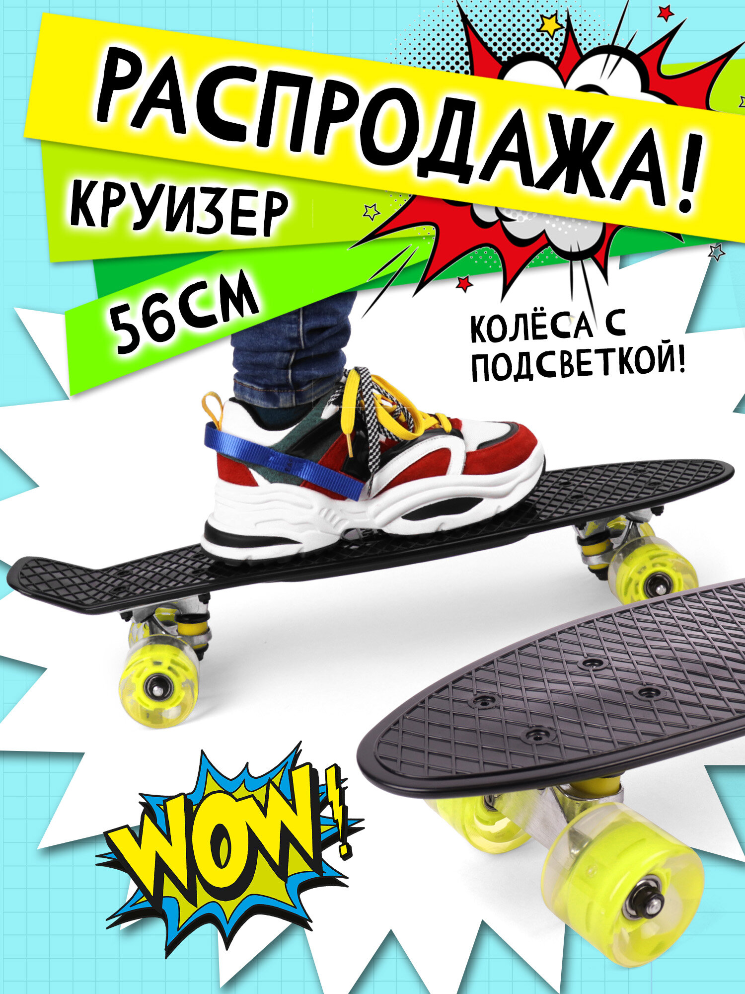 СохранитьDS 02 black Led. Доска-круизер, дека 56*14,5 см., черная., колеса PU с подсветкой. интересное: