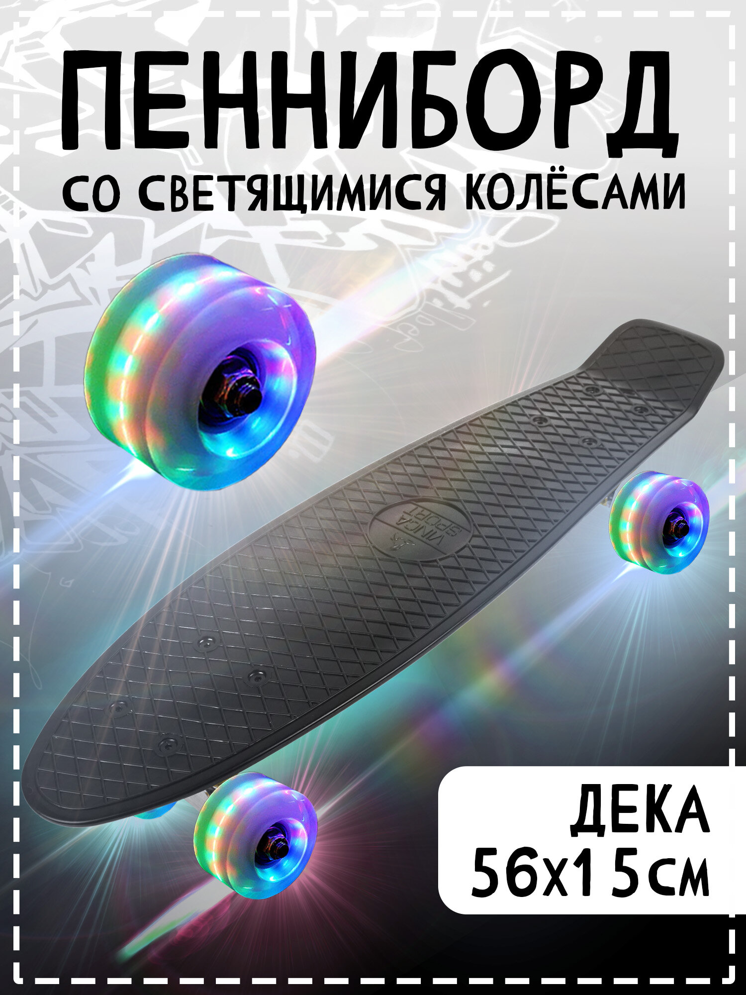 Купить DS 02 black Led. Доска-круизер, дека 56*14,5 см., черная., колеса PU с подсветкой.