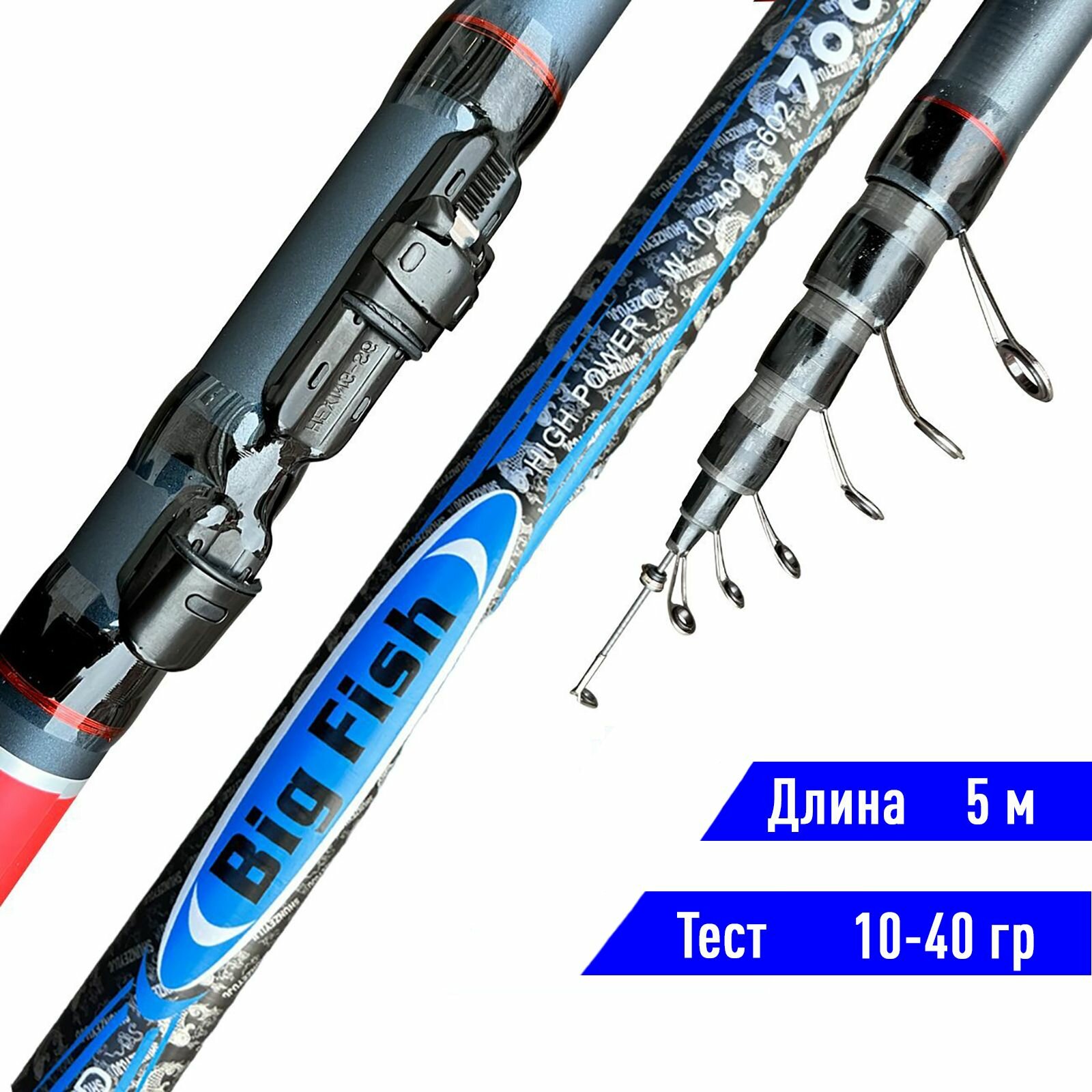 Удилище болонское карбоновое телескопическое Big Fish 10-40 гр 5 метров/ складная болонка