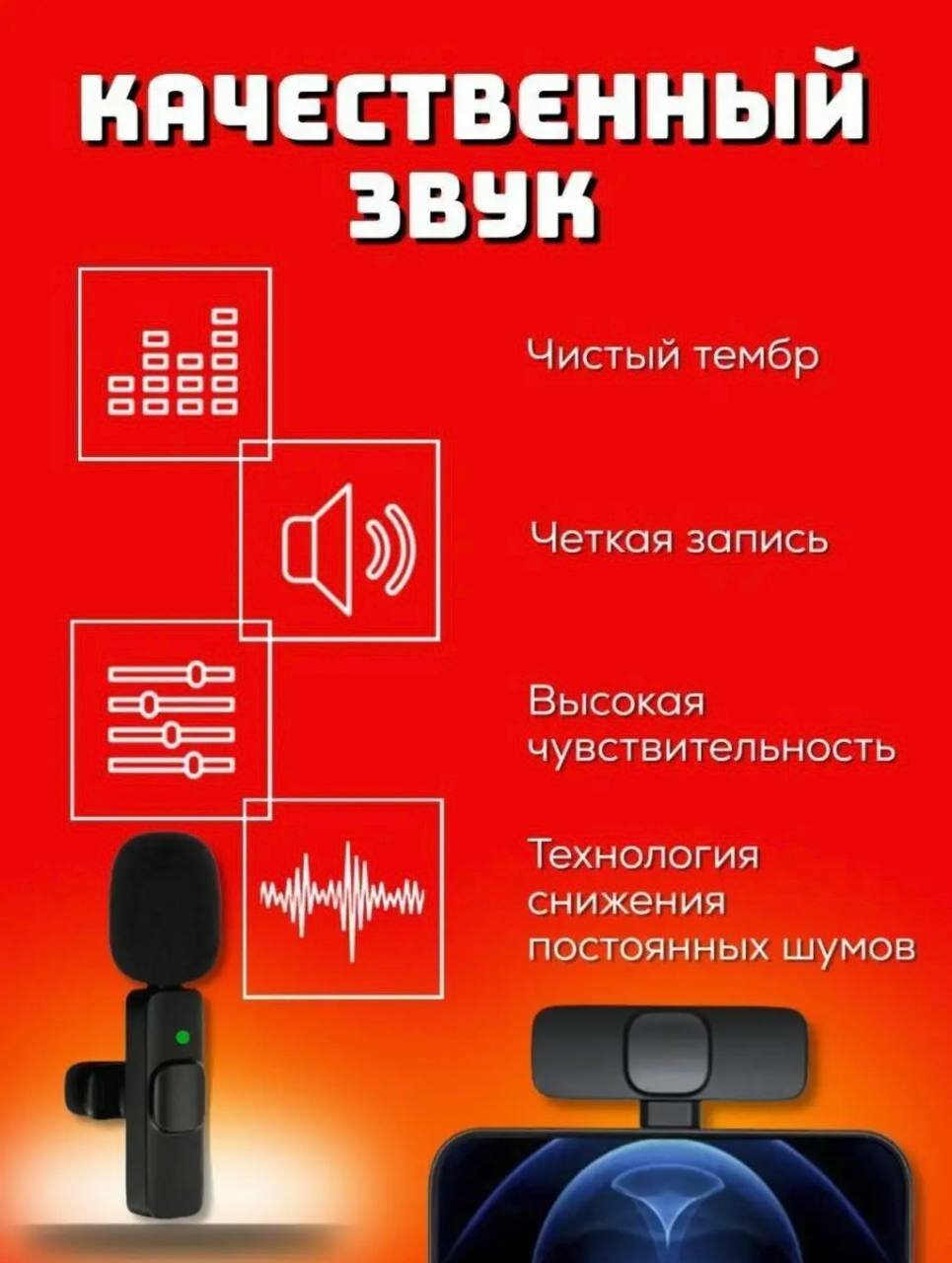 Беспроводной петличный микрофон для интервью и стриминга в соц. сетях / Петличка звуковая дистанционная Lightning , с Bluetooth 5.3 ( Черный ) интересное: